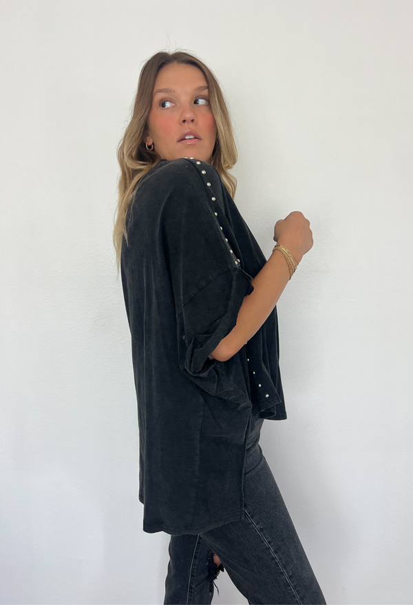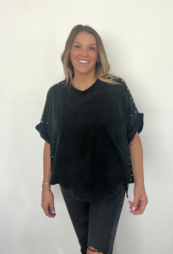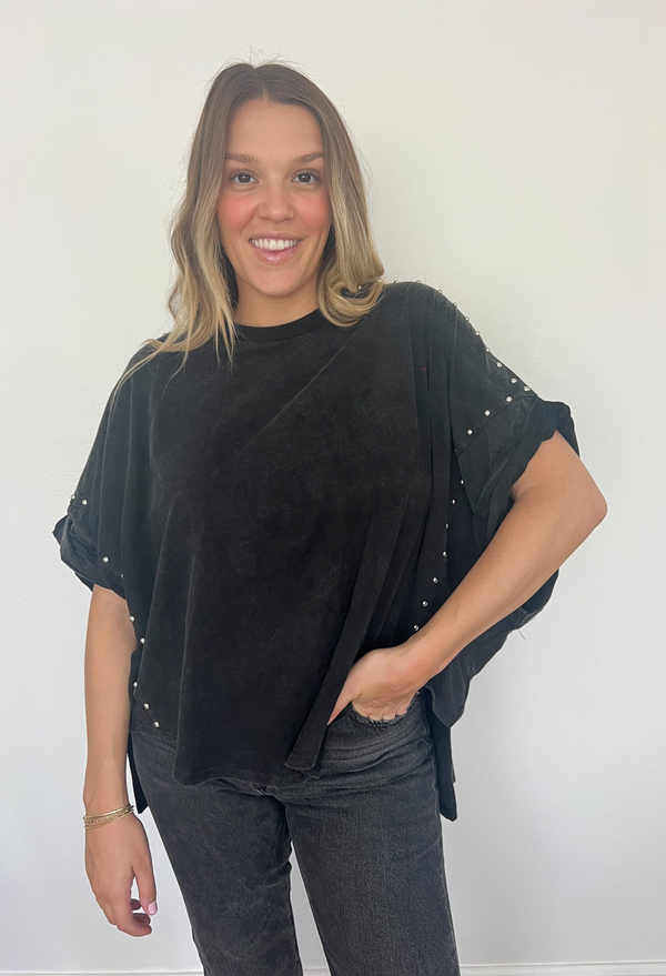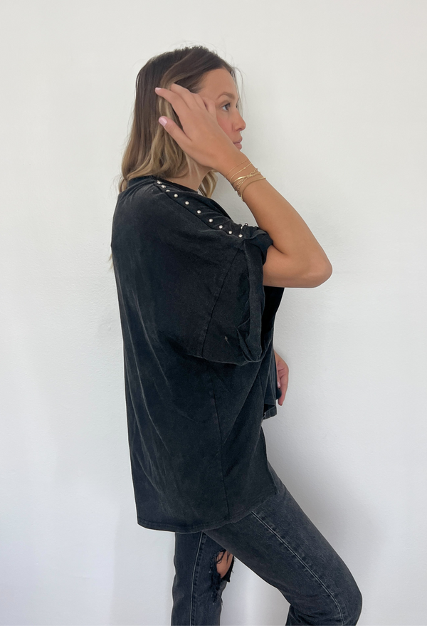 Get ready to unleash your inner rockstar with our Oversized Garment Washed Studded Tee! This tee is the perfect blend of comfy and cool, featuring a relaxed fit that feels like a warm hug.