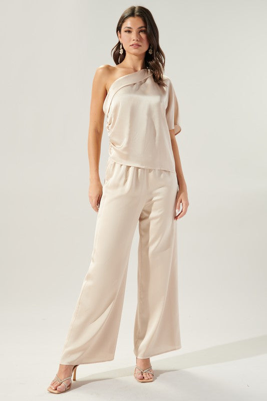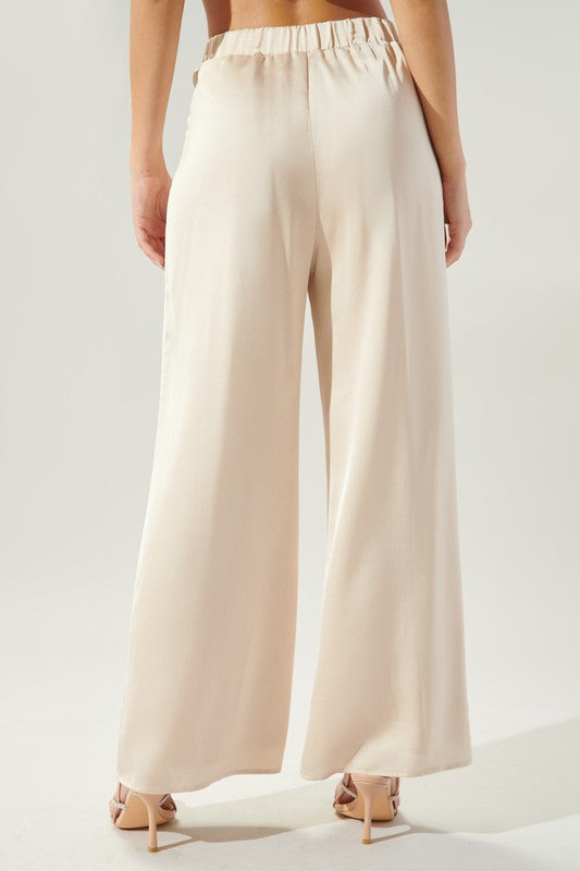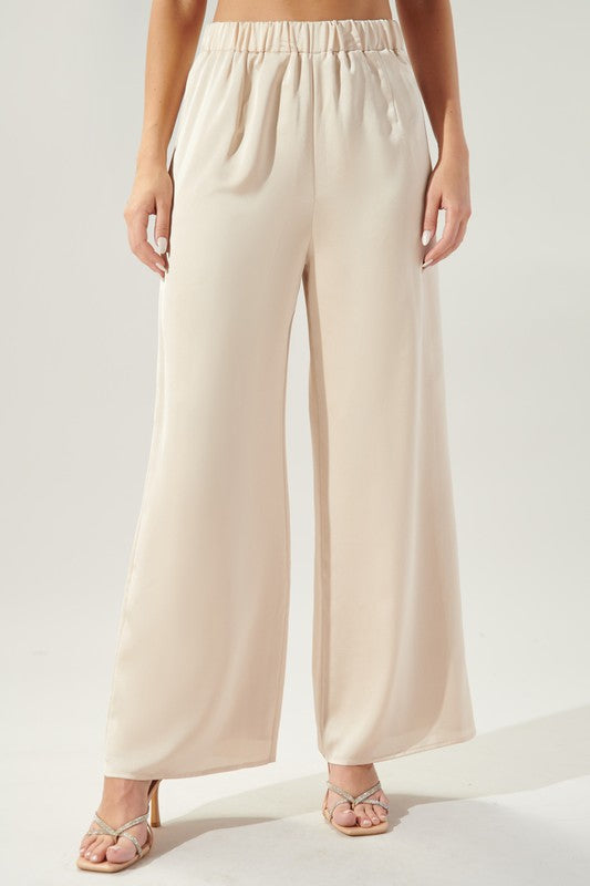 Blanc Satin Wide Leg Pants