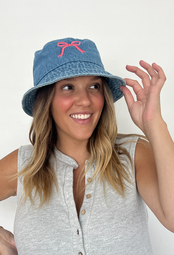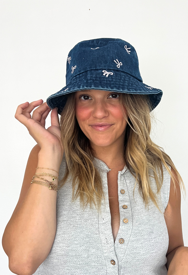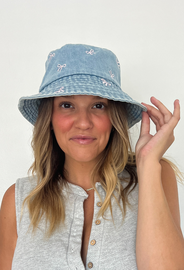 Get ready to elevate your style game with our super cute Denim Bucket Hat, adorned with delightful embroidered bows! This trendy accessory perfectly blends playful charm and laid-back coolness, making it a must-have for bow lovers everywhere.